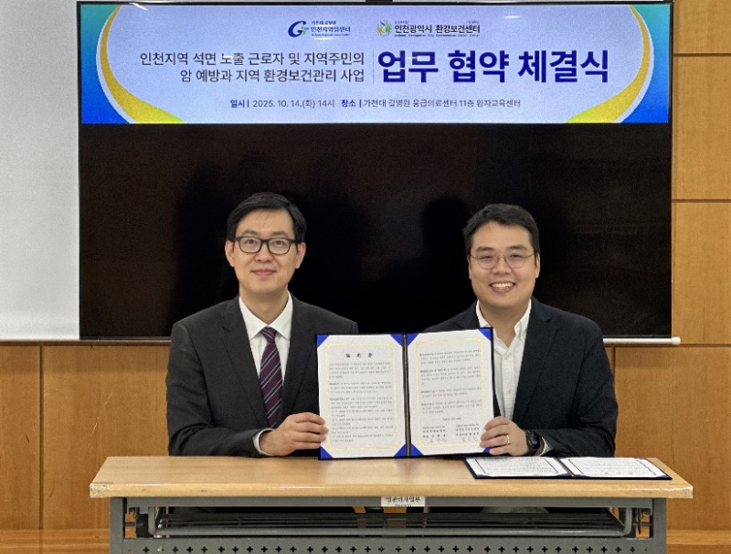 가천대 길병원 인천환경보건센터(센터장 최원준, 직업환경의학과)와 인천지역암센터(센터장 백정흠, 외과)가 지역 주민의 암 예방과 환경보건 관리 강화를 위해 손잡았다.