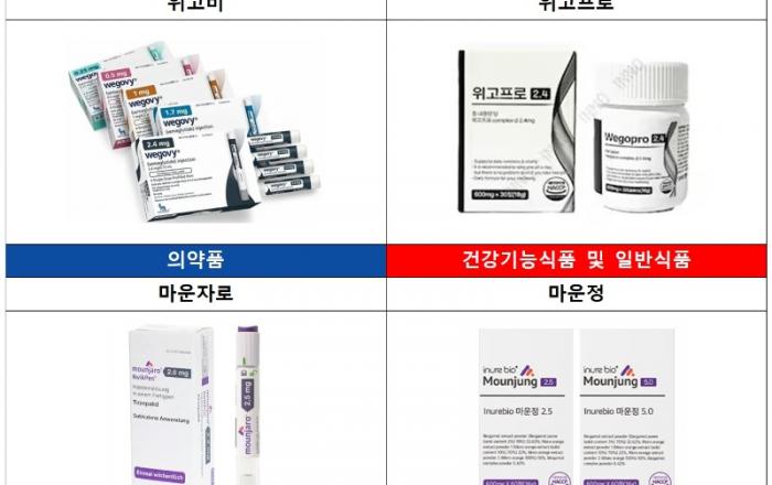 ▲ 의약품과 이름·포장이 유사한 건기식·일반식품이 늘면서 대한약사회가 치료 지연과 오남용 우려를 경고했다. [사진=대한약사회]대한약사회가 의약품과 명칭·외형이 유사한 건강기능식품과 일반식품 유통이 늘고 있다며 소비자 주의를 당부했다. 특히 비만·당뇨 치료제를 연상시키는 제품까지 등장하면서 치료 지연과 오