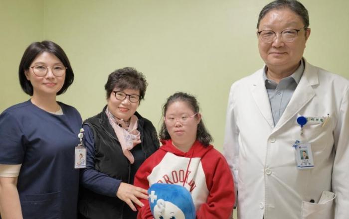 ▲ 다운증후군과 선천성 심장질환을 앓아온 30대 여성이 백내장과 유방암을 동시에 극복하고 건강을 회복했다. 건강 되찾은 백공주(오른쪽 두번째)씨와 의료진 [사진=부천세종병원]다운증후군과 선천성 심장질환을 앓아온 30대 여성이 백내장과 유방암까지 동시에 진단받았으나 수술을 통해 건강을 되찾았다.19일 부천