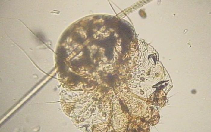▲ 현미경으로 본 옴 진드기 [사진=위키백과](헬스케어저널=오혜나 기자) 감염성 피부질환 ‘옴(Scabies)’이 요양시설과 고령층을 중심으로 다시 증가하고 있어 주의가 요구된다. 단순 건조증이나 알레르기로 오인해 방치할 경우 가족과 주변으로 빠르게 전파될 수 있다.가천대 길병원 피부과 김현정 교수는 “