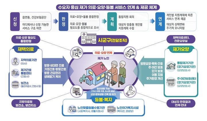 방문진료, 방문간호·복약관리, 식사 지원, 병원 동행, 주거환경 개선 등이 동주민센터 단일 창구를 통해 연결되는 것이 핵심이다.