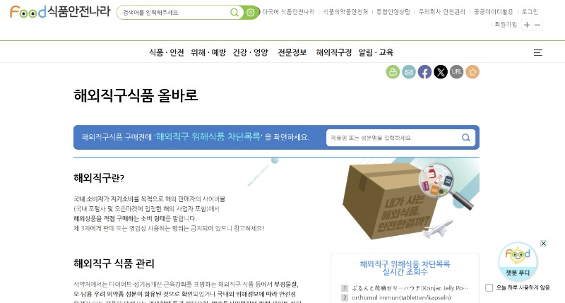 식약처 관계자는 “해외직구식품은 국내 관리 체계 밖에 있는 경우가 많아 소비자의 사전 확인이 무엇보다 중요하다”며 “국민이 안심하고 해외직구식품을 구매할 수 있도록 안전정보 제공과 제도 개선을 꾸준히 추진하겠다”고 밝혔다.