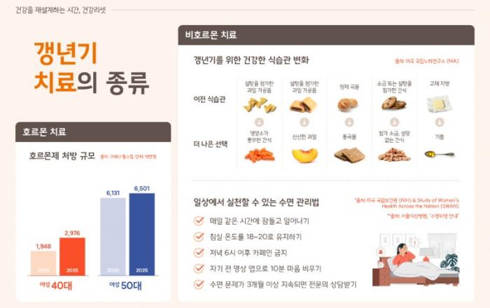 ▲ 한화손해보험 펨테크연구소는 김난도 교수팀과 함께 갱년기를 신체 기능의 종료가 아닌 뇌와 몸의 균형이 새롭게 재편되는 ‘건강 리셋’의 시기로 분석한 트렌드 리포트를 공개했다. [사진=한화손해보험]한화손해보험 라이프플러스(LIFEPLUS) 펨테크연구소가 김난도 서울대 명예교수가 이끄는 트렌드코리아팀과 함께 ‘뉴년기(New+갱년기) 트렌드 리포트’ 두 번째 시리즈인 ‘건강 리셋’을 29일 공개했다.이번 보고서는 갱년기를 단순한 노화 과정이 아닌 뇌와 신체 시스템이 새롭게 재편되는 전환기로 분석했다. 여성호르몬 ‘에스트로겐’ 감소로 뇌...