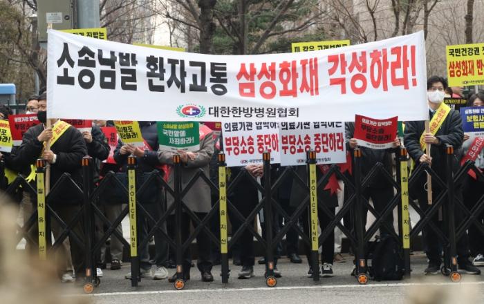 ▲ 삼성화재의 잇따른 민형사상 소송 대응을 둘러싸고 한방의료계의 반발과 규탄 목소리가 갈수록 커지고 있다. [사진=대한한방병원협회]대한한방병원협회가 삼성화재의 잇따른 민형사상 대응을 두고 “한방의료기관과 환자를 상대로 한 무차별 소송”이라며 공세 수위를 높이고 있다. 협회는 11일 서울 서초구 삼성화재 강남사옥 앞에서 규탄대회를 열고, 삼성화재가 적정 진료로 인정된 사안을 두고도 소송과 심사 청구를 반복해 의료기관 운영과 환자 치료에 심각한 차질을 빚게 하고 있다고 주장했다. 지난해 9월부터 이어진 규탄 집회는 이날로 여섯 번째를 ...