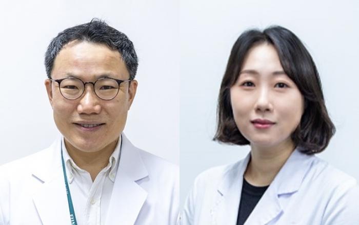▲ (왼쪽부터) 이대서울병원 암센터 외과 강경호·김혜지 교수 [사진=이대서울병원]이대서울병원 암센터 외과 강경호·김혜지 교수팀이 최신 단일공 로봇수술기인 다빈치 SP(Single Port)를 이용해 개발한 ‘유륜만을 통한 One Port Areolar 접근 갑상선 절제술’의 임상 데이터를 분석한 결과,