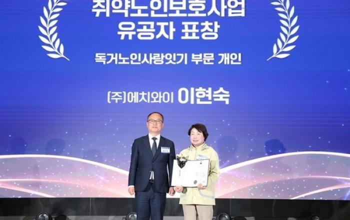 ▲ 이현숙 hy 프레시 매니저는 독거노인 돌봄 활동 중 고독사 발견과 신속한 조치 공로를 인정받아 ‘2025년 사랑나눔의 장’에서 보건복지부 장관상을 수상했다. [사진=hy]이현숙 hy 프레시 매니저가 ‘2025년 사랑나눔의 장’에서 취약 노인 보호사업 유공자로 선정돼 보건복지부 장관상을 받았다.행사에는
