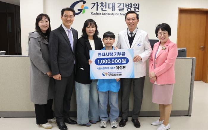▲ 열두 살 초등학생이 용돈을 모아 병원에 100만원을 기부하며 따뜻한 나눔을 실천했다. [사진=가천대 길병원](헬스케어저널=구재회 기자) 열두 살 초등학생이 용돈을 모아 병원에 기부하며 따뜻한 나눔을 실천했다.가천대 길병원은 인천 남동구 석천초등학교 5학년 이성민 군(12)이 어머니 김아름 씨, 이근화