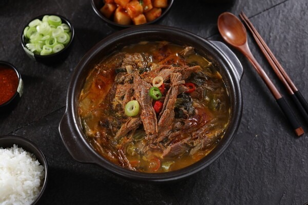 여기에 고사리·배추 등 채소를 넣어 다시 끓인 뒤 소금으로 간을 맞추고 들깻가루를 넣으면 완성된다.