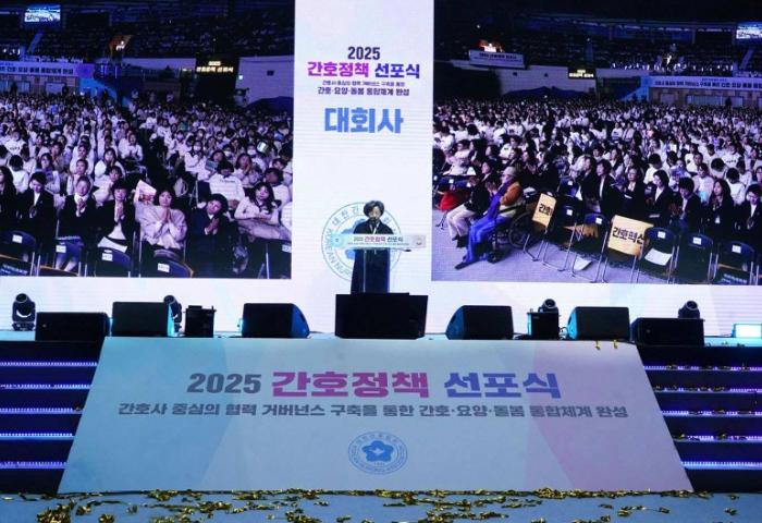 대한간호협회가 17일 서울 장충체육관에서 열린 ‘2025 간호정책 선포식’에서 간호법 제정 이후 처음으로 국가 보건의료 체계의 방향성을 제시했다.