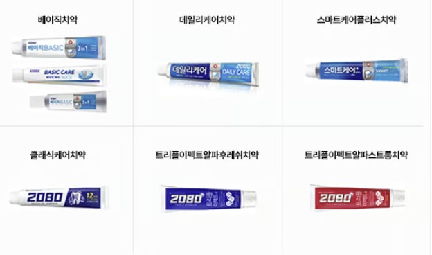 검사 대상은 2080베이직치약, 2080데일리케어치약, 2080클래식케어치약, 2080트리플이펙트알파스트롱치약, 2080트리플이펙트알파후레쉬치약, 2080스마트케어플러스치약 등 6종이다.
