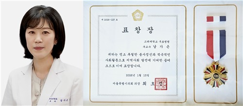 고대구로병원 가정의학과 남가은 교수가 빅데이터 기반 만성질환 예방 연구와 시민 건강 증진에 기여한 공로를 인정받아 ‘서울특별시의회 의장 표창’을 수상했다.