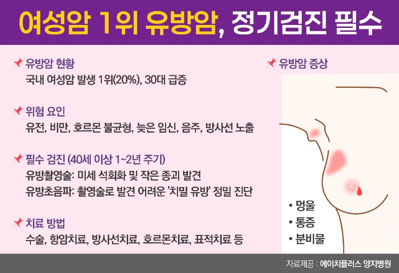 특히 최근에는 40~50대뿐 아니라 30대 젊은 여성층에서도 유방암 발생이 증가하는 추세로, 정기적인 건강검진의 중요성이 더욱 강조되고 있다.