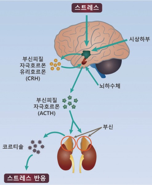 이후 시상하부-뇌하수체-부신(HPA) 축이 작동하면서 코르티솔 등 스트레스 호르몬이 분비돼 균형을 유지하려 한다. 그러나 이러한 상태가 장기화되면 면역 기능 저하, 골밀도 감소, 생식 기능 저하 등 다양한 건강 문제가 나타날 수 있다.